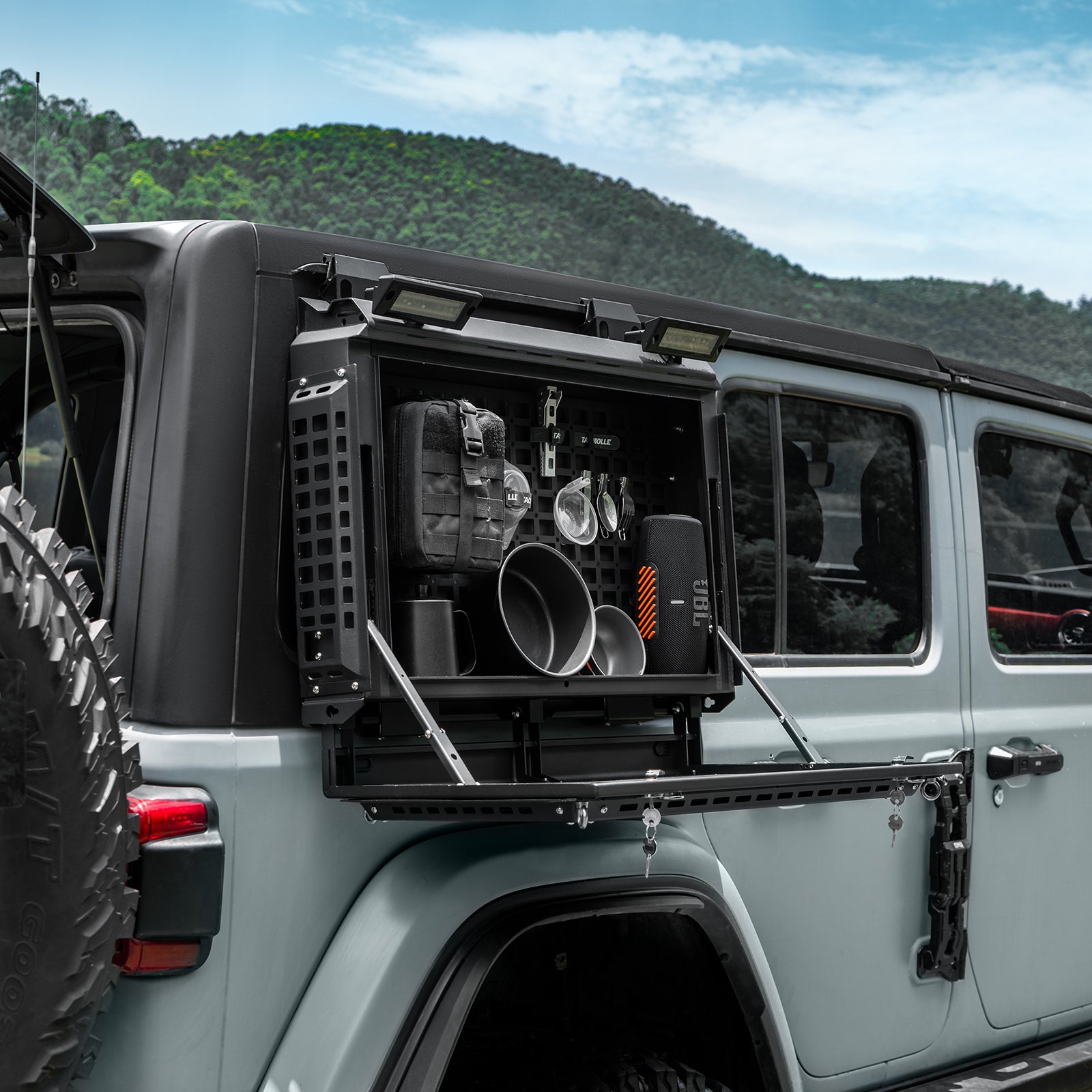 Tacmolle Multi-functional Rear Window Storage Box with Concealed Table For Jeep Wrangler JL Accessories